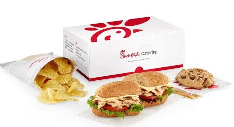 Chick-Fil-A is also a crowd-pleaser for budget lunches without the fuss. Individually boxed Chick-Fil-A lunches and chicken sandwich and wrap platters are no-brainers.